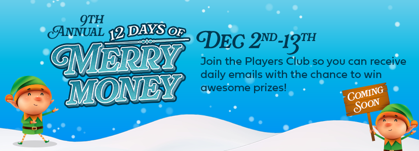 To enter to win ALL the Merry Money prizes, sign up for an account enabled for online play—or upgrade your existing Players Club account!