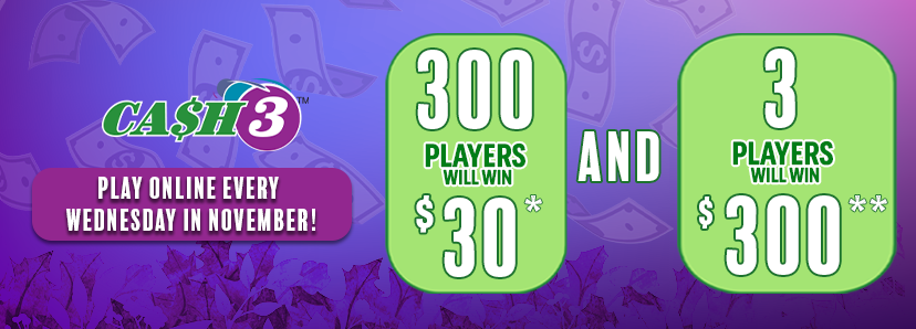 **3 winners will be chosen randomly from eligible entrants, defined as those who purchased at least one play for Cash 3 online (via galottery.com or the official Georgia Lottery mobile app) on all four of the Wednesdays in November: 5, 12, 19, and 26. Each winner will receive $300 in bonus funds credited to their iHOPE® account within 14 business days of the end of the offer period. Bonus funds may be used only to purchase lottery games and may not be withdrawn.