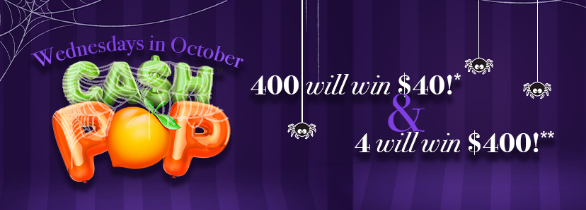 **4 winners will be chosen randomly from eligible entrants, defined as those who purchased at least one play for Cash Pop online (via galottery.com or the official Georgia Lottery mobile app) on all five of the Wednesdays in October: 1, 8, 15, 22 and 29. Each winner will receive $400 in bonus funds credited to their iHOPE® account within 14 business days of the end of the offer period. Bonus funds may be used only to purchase lottery games and may not be withdrawn.