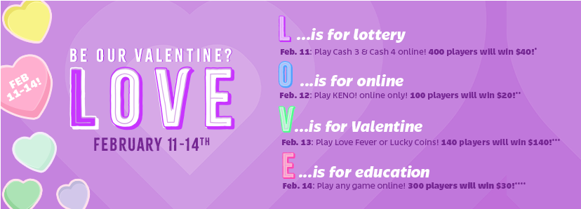 Day 3: ***140 winners will be chosen randomly from eligible entrants, defined as those who purchase at least one play each for either Love Fever or Lucky Coins online (via galottery.com or the official Georgia Lottery mobile app) between 12:01 am ET and 11:59 pm ET on February 13, 2026. Each winner will receive $140 in bonus funds credited to their iHOPE® account within 7 business days of the end of the offer period. Bonus funds may be used only to purchase lottery games and may not be withdrawn.